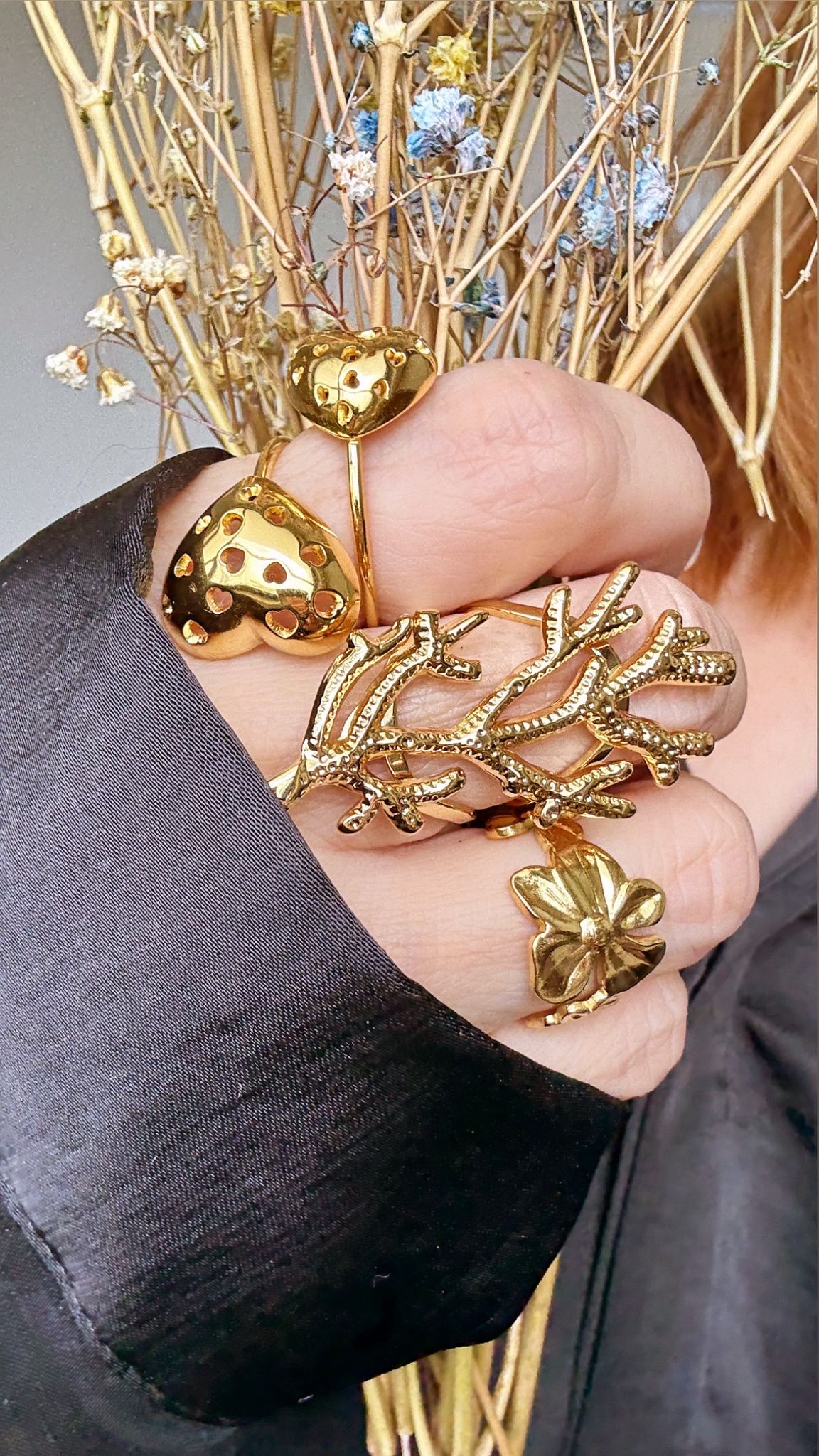 Anillo coral dorado